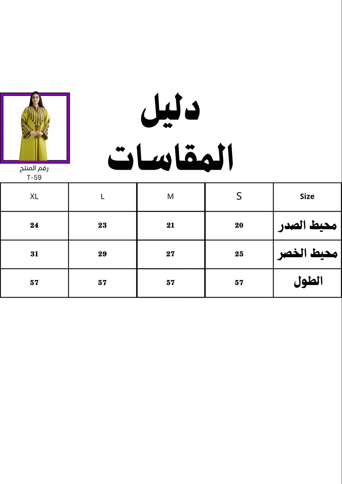 دليل مقاسات المنتج